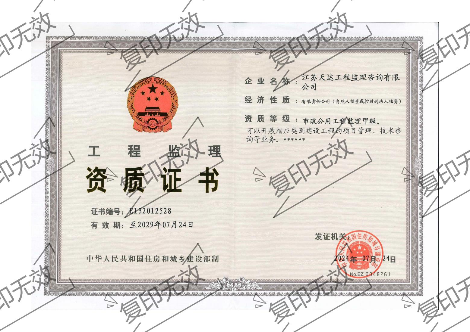1、市政公用工程監理甲級